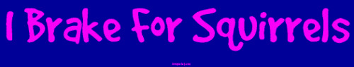 I Brake For Squirrels Bumper Sticker. Width: 10.5 inches, Height: 2 inches. Stickers are printed on high quality Starliner Premier Polypro water proof paper and adhere with adhesive to your car, truck, van, motorhome, motorcycle, notebook, cubicle, or office.